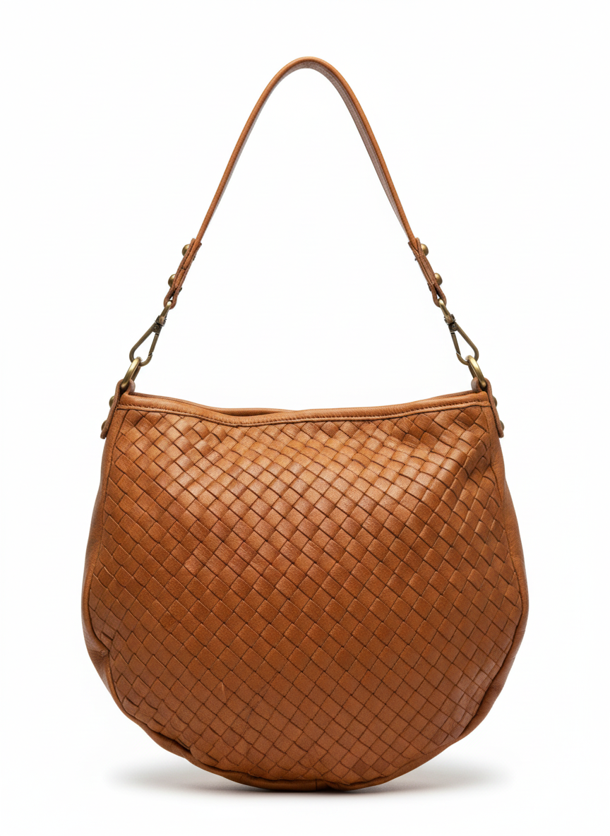 Woven Goat Leather Hobo Shoulder Bag