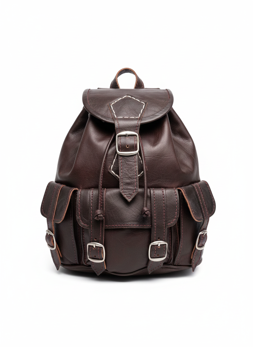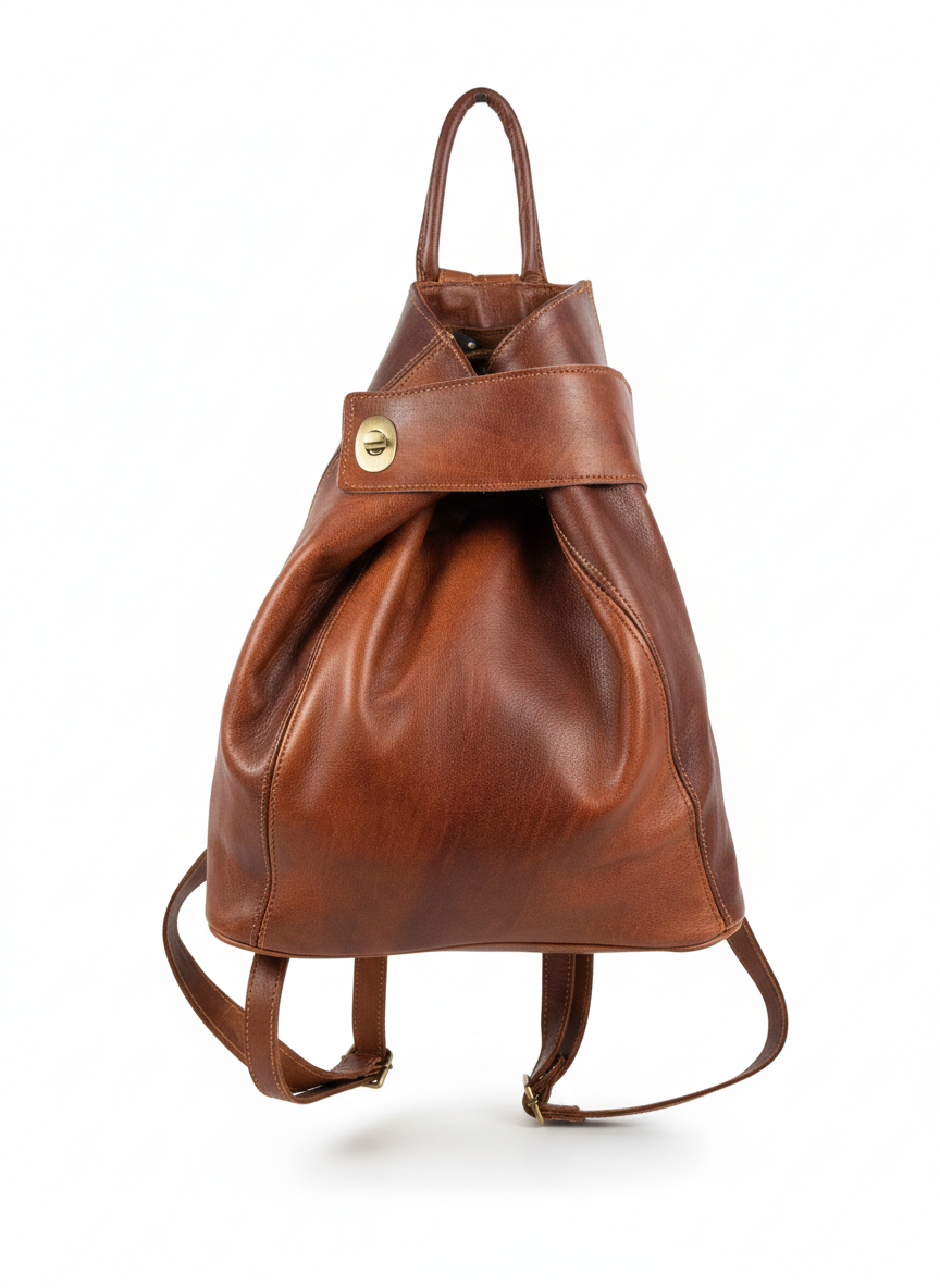 Made from natural goat leather, known for its softness and durability. In practice, it maintains its shape and ages beautifully with daily use.