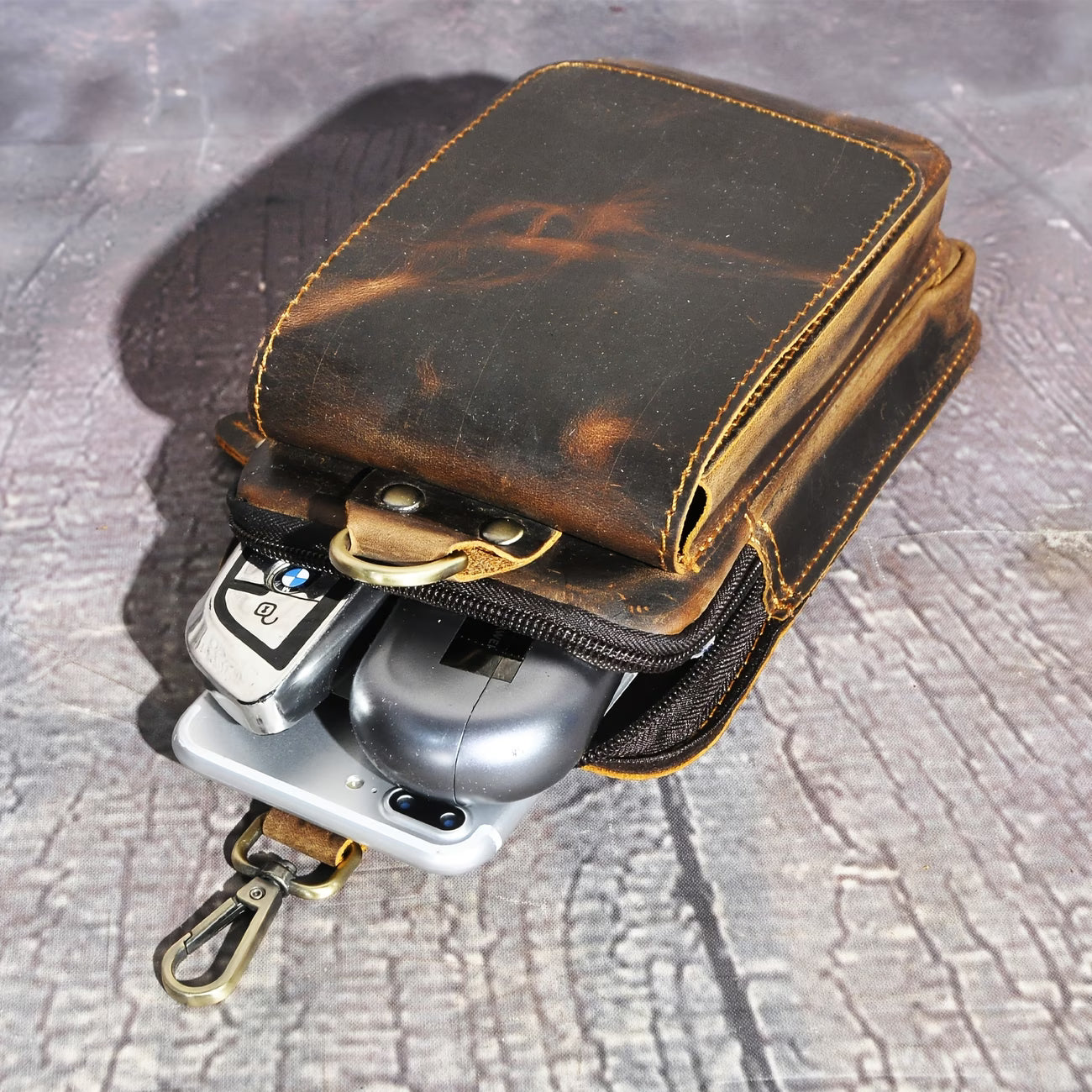 This men’s genuine leather phone waist pouch is designed for convenience, durability, and discreet everyday use. Crafted from high-quality genuine leather, it offers a hands-free solution for carrying your smartphone securely on your belt.